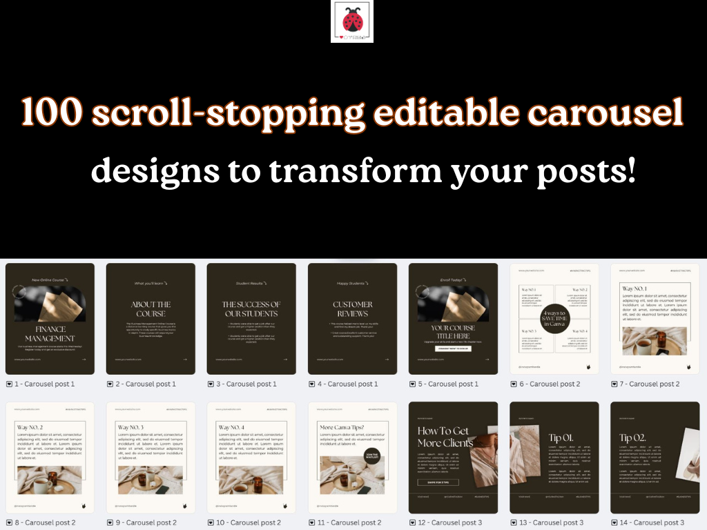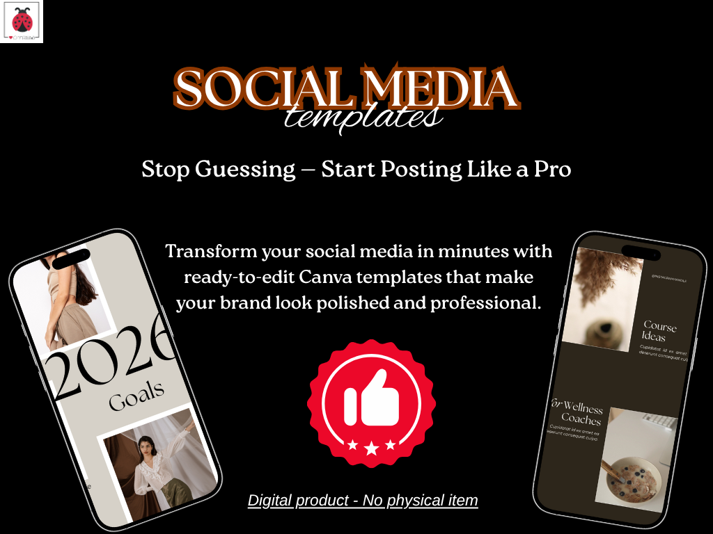 Make your social media stand out with 220 fully editable Canva templates — including single posts, carousels, and reels — designed to help you create professional, scroll-stopping content in minutes.